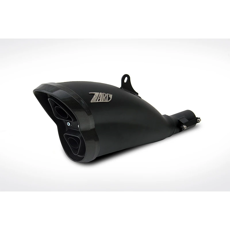ZARD Aggressive and fashionable design for a unique ZARD creation that astonish for a totally innovative design, uncommon shape and high quality. Technical specifications: High temperature resistance black ceramic coating Carbon end-cap.