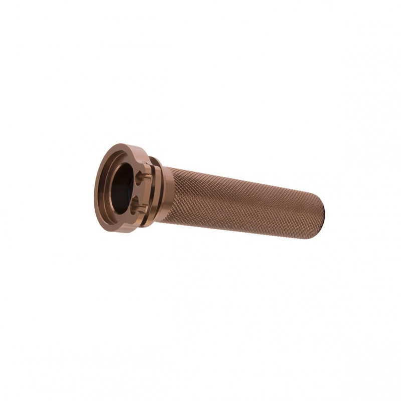 Precision CNC machined with a knurled finish to provide a solid bond between tube and grip. Compatible with all handlebars. Anodized billet aluminum for durability. Removable end cap allows adaptation of wrap around style hand-guards. Precision CNC machined. Removable end cap with o-ring for hand guards. Knurled finish for strong grip bond.